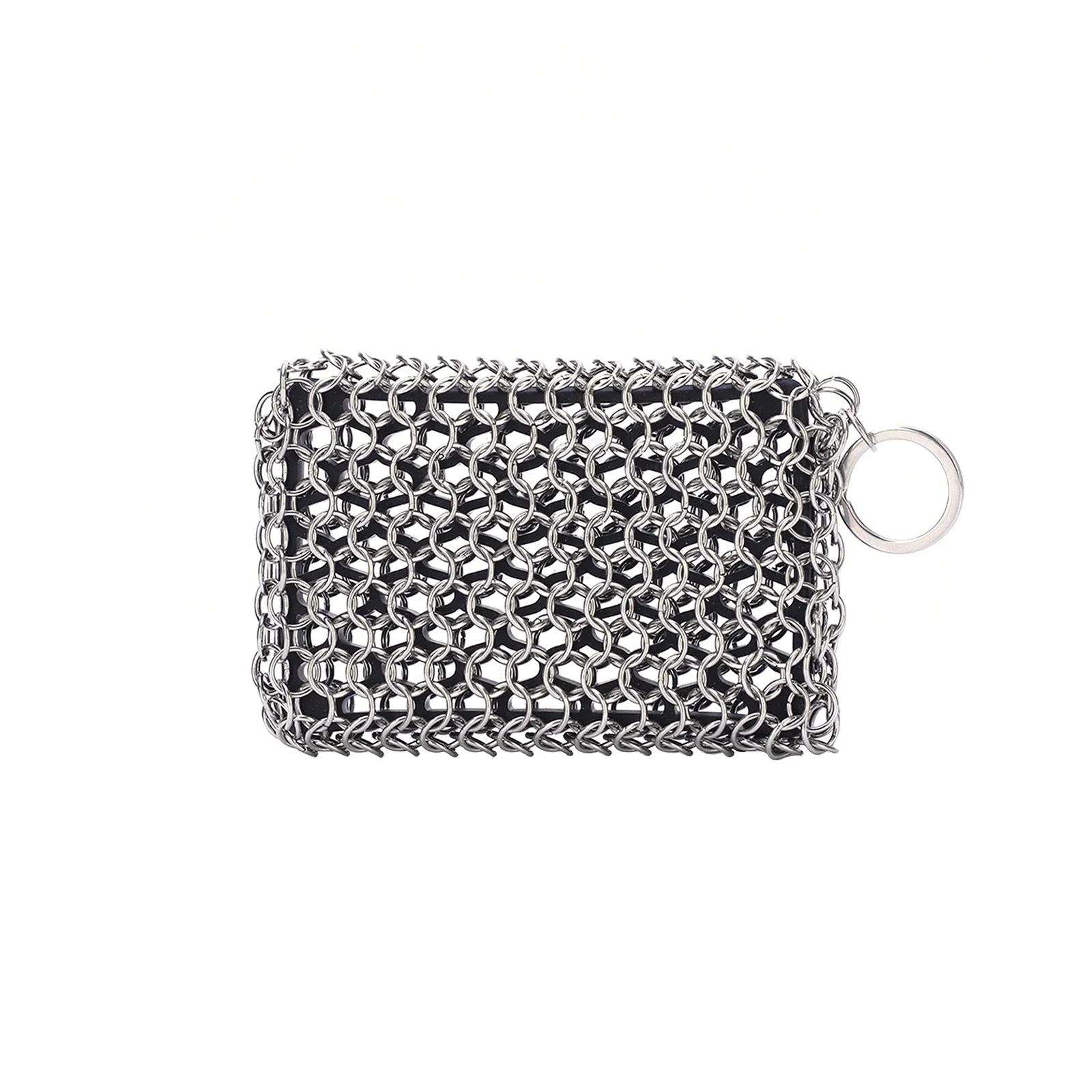Сильный очиститель для сковородок из нержавеющей стали с кольчужным скребком и подвесным кольцом, щетка для чистки чугунных сковородок для кухни чёрный