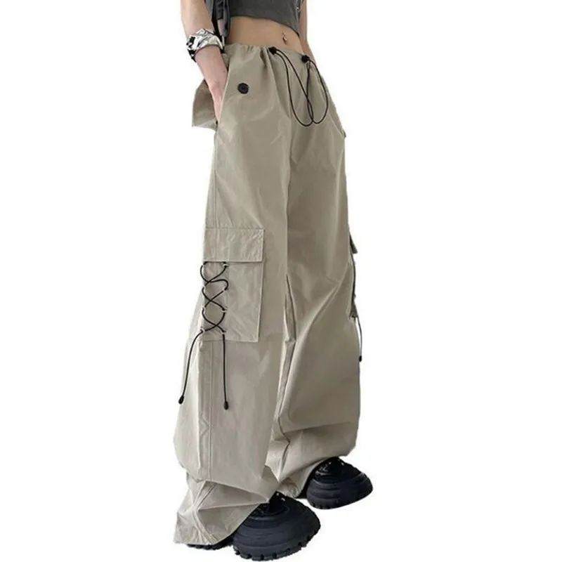 American Streetwear Cargo Pants Women Spring Summer Drawstring Waist Pockets Casual Solid Loose Y2K Trousers s684