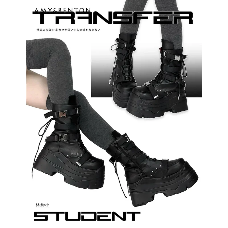 25COSОппи-стиль, оригинальные короткие сапоги на толстой подошве для студентов, готические короткие сапоги в стиле панк для девочек, милые крутые мотоциклетные ботинки