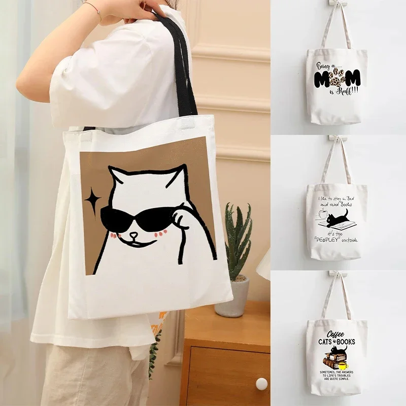 Симпатичная Холщовая Сумка через плечо с животными, Kawaii Resuable Eco хозяйственная сумка с изображением мультипликационных героев, Вместительная женская сумка-тоут, Портативная сумка