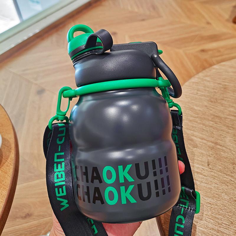 Симпатичная двойная термобутылка для воды с соломинкой, большая емкость, термокружка из нержавеющей стали, переносная дорожная кружка для питья 750ml