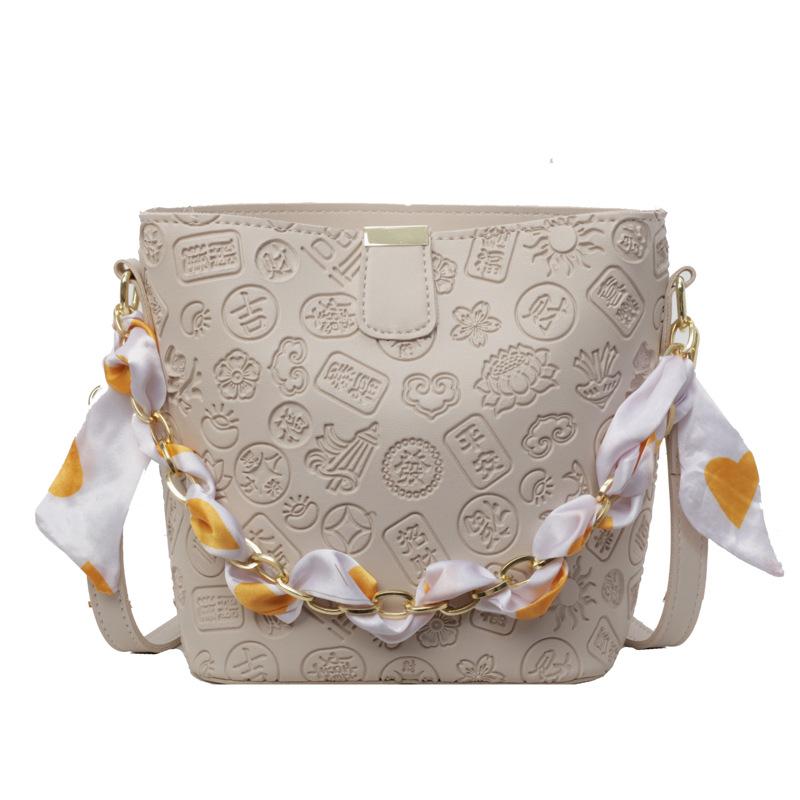 Симпатичная женская сумка через плечо с цветочным принтом, женская популярная новая модная однотонная сумка-ведро 2024 года белый