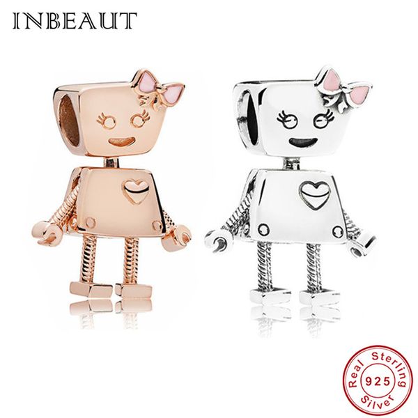 Симпатичные женские бусины робота-робота подходят Пандора браслет из стерлингов