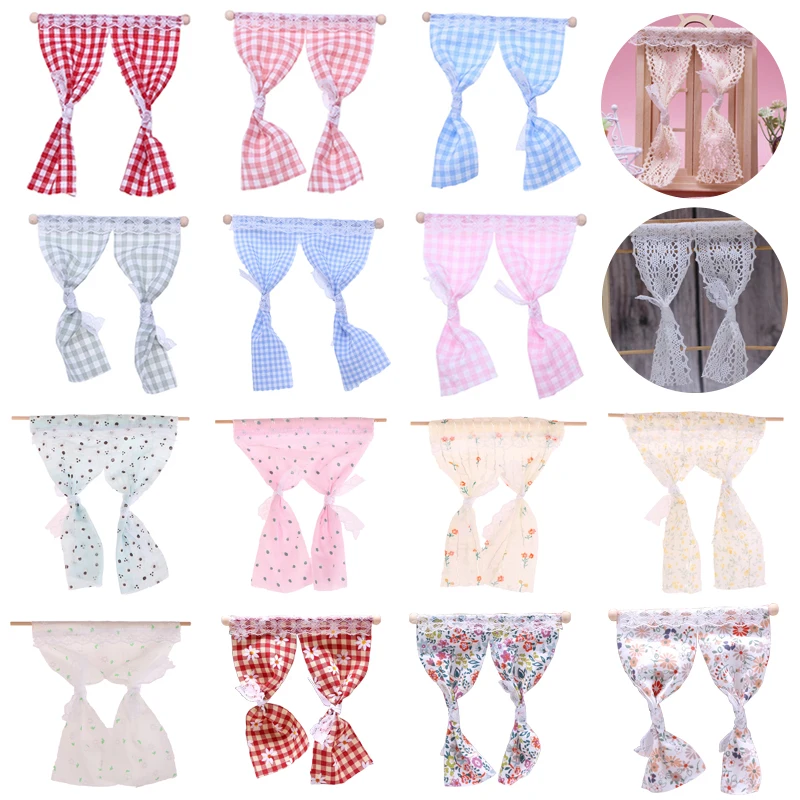 Симпатичные миниатюрные занавески для кукольного домика в масштабе 1:12, занавески с ромашками и цветами, хлопковые занавески для кукольного домика, украшения мебели для спальни