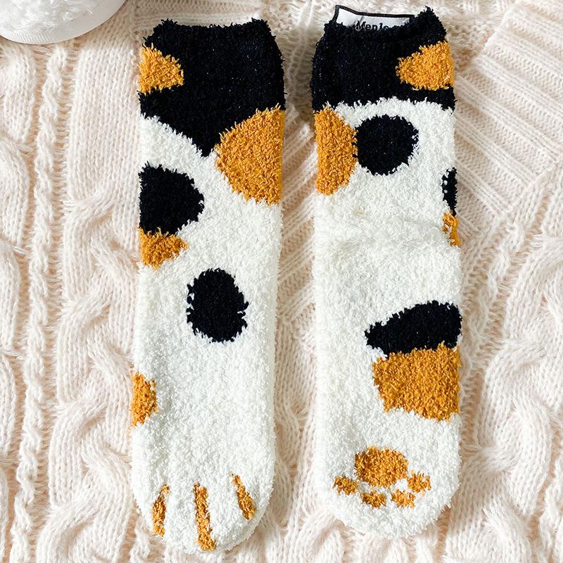 Симпатичные полосатые носки с кошачьими лапками, зимние женские носки из кораллового флиса, толстые теплые носки для сна, бархатные носки конфетного цвета, теплые One Size