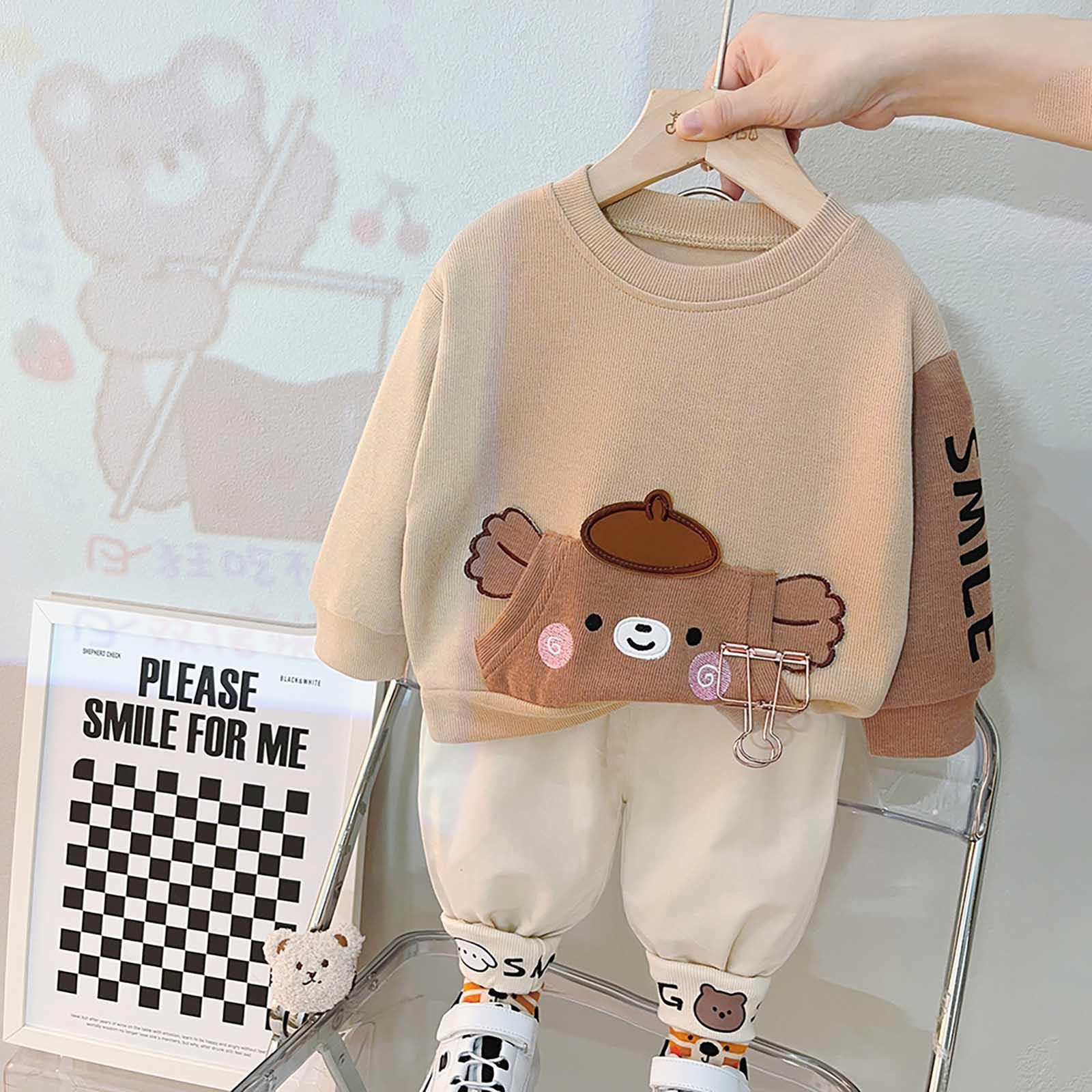 Симпатичные топы с принтом + штаны для маленьких мальчиков и девочек, пижамный спортивный костюм, комплект одежды 80 коричневый/белый