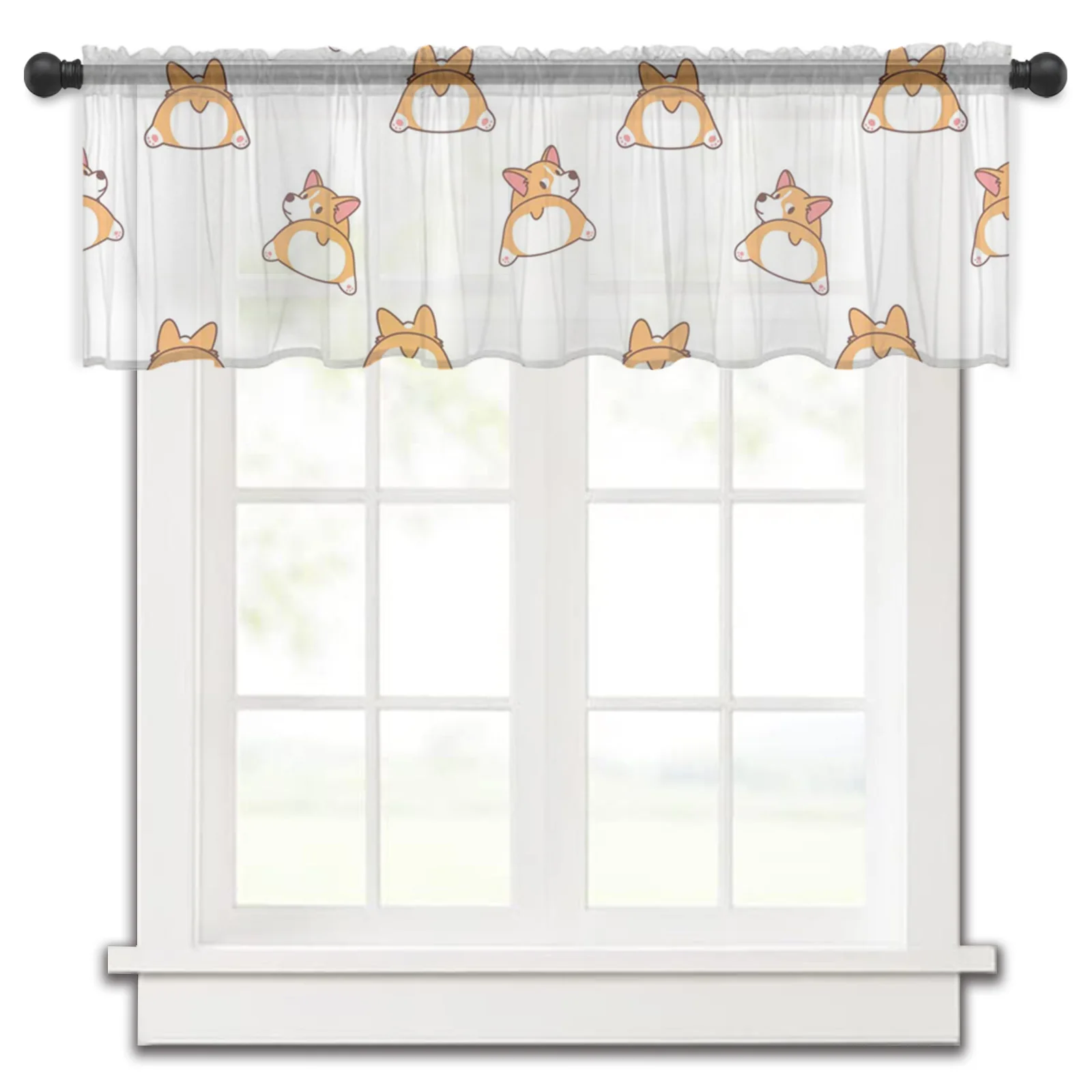 Симпатичные тюлевые шторы Corgi Ass для кухни, маленькие оконные занавески, прозрачные короткие занавески для спальни, гостиной, домашний декор, вуаль, занавески