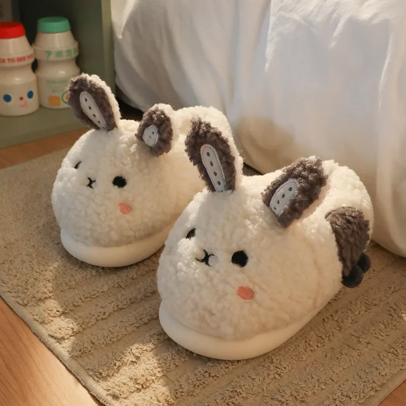 Симпатичные хлопковые тапочки на каблуке с крышкой в виде кролика, женские зимние домашние теплые плюшевые домашние тапочки для пар, хлопковая обувь на толстой подошве