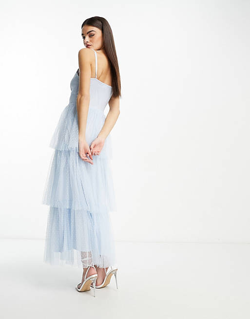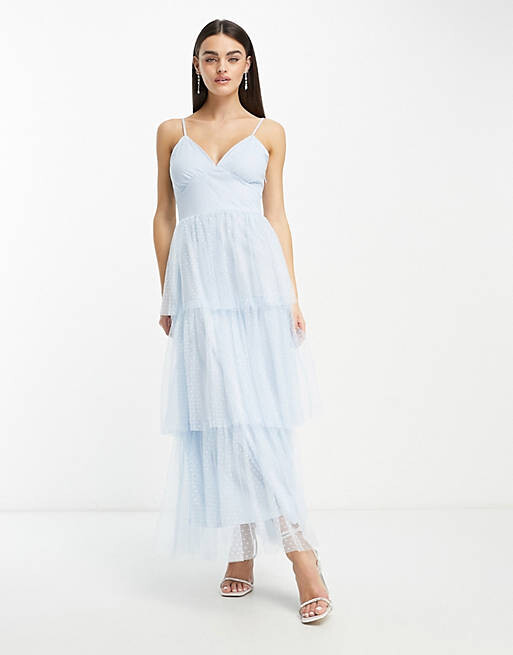 Синее платье макси из тюля добби и ярусной юбкой Vila Bridesmaid, Синий, Синее платье макси из тюля добби и ярусной юбкой Vila Bridesmaid