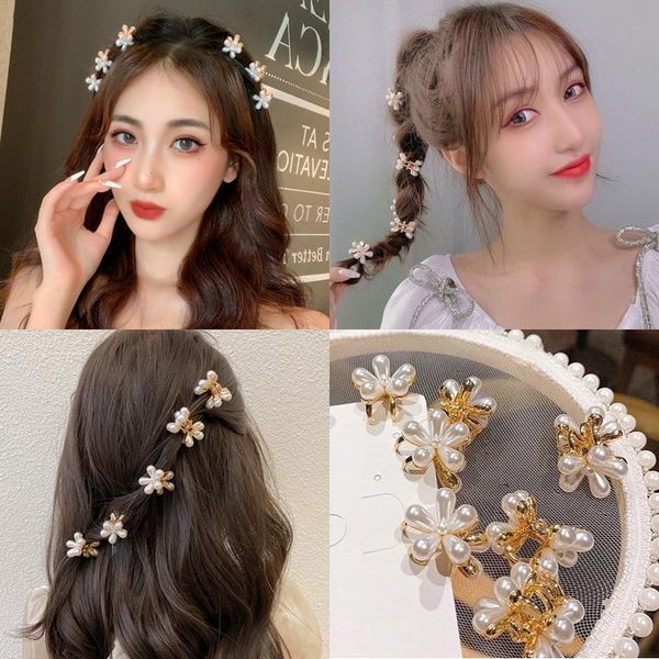 hair clips & barrettes trendy mini metal pearl for women korean flower set accessories crabs girls headwear wedding, Golden;silver