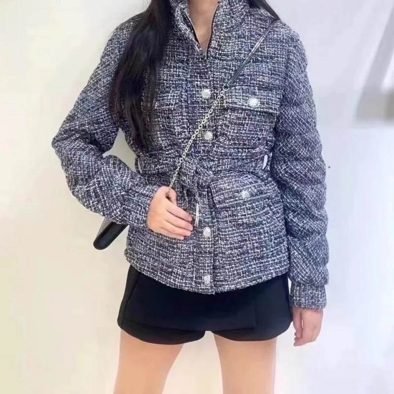 Синее шерстяное пальто с поясом, осень-зима, Новое поступление, теплая хлопковая верхняя одежда, маленькая фрация, джемпер с застежкой на талии