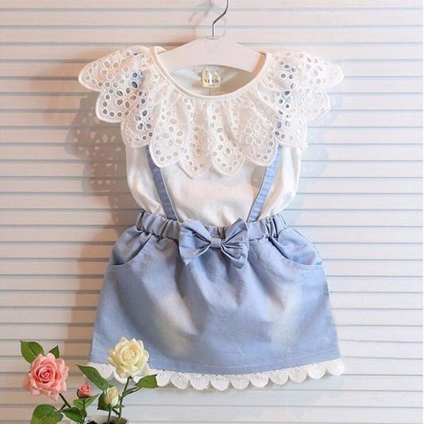 Синие Джинсы Платье Лето Платье Без Рукавов Белый Футболка Девочки Одежда Платья