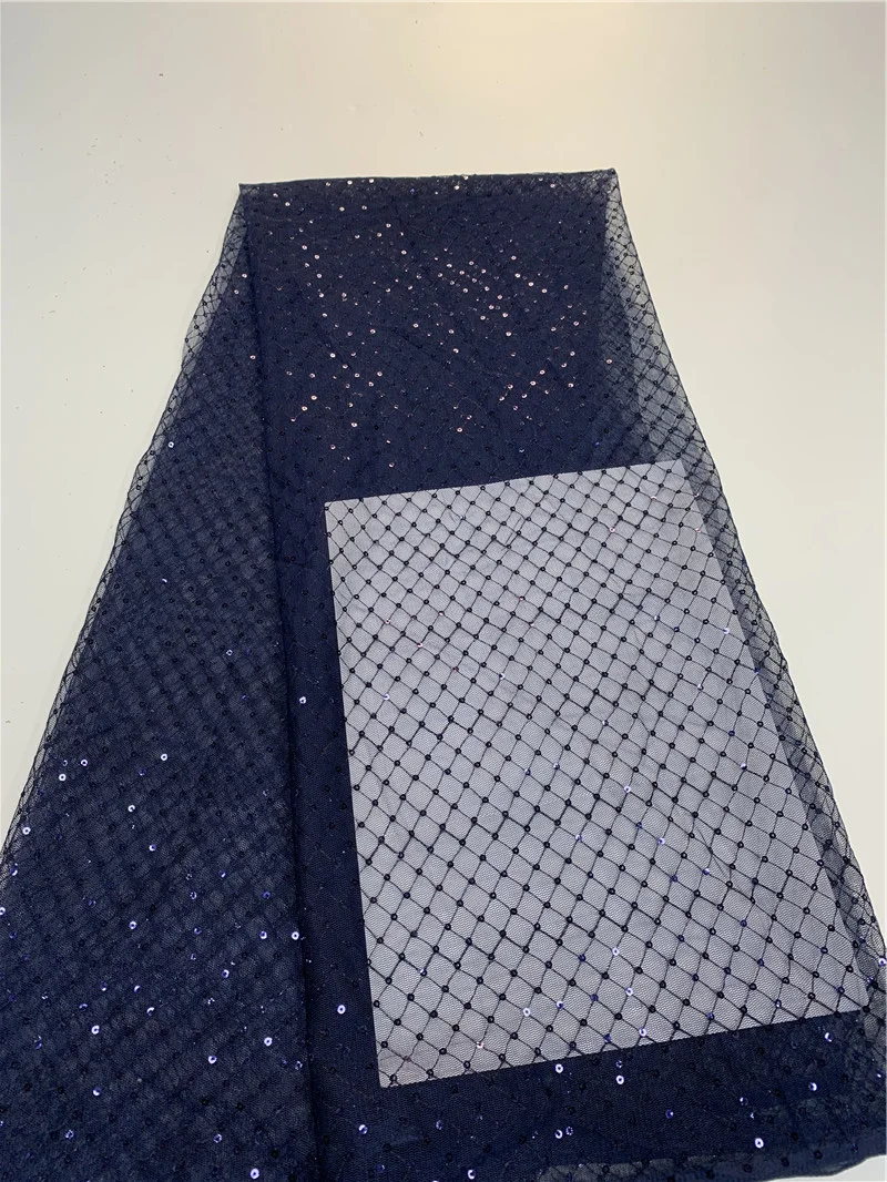 Синие блестки Тюль Кружево Африканское кружево ткань 2021 высокое качество французская Сетка кружево ткани с блестками 5 ярдов для свадебног...