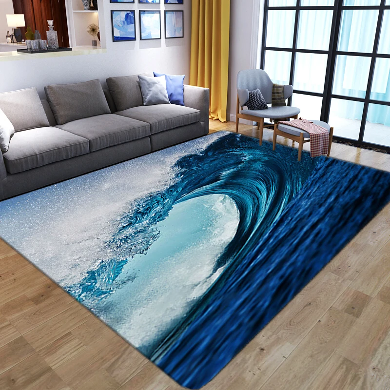 Синие морские волнистые Мультяшные ковры для дома, украшение для гостиной, спальни, прикроватный коврик для дивана, мягкие противоскользящ...