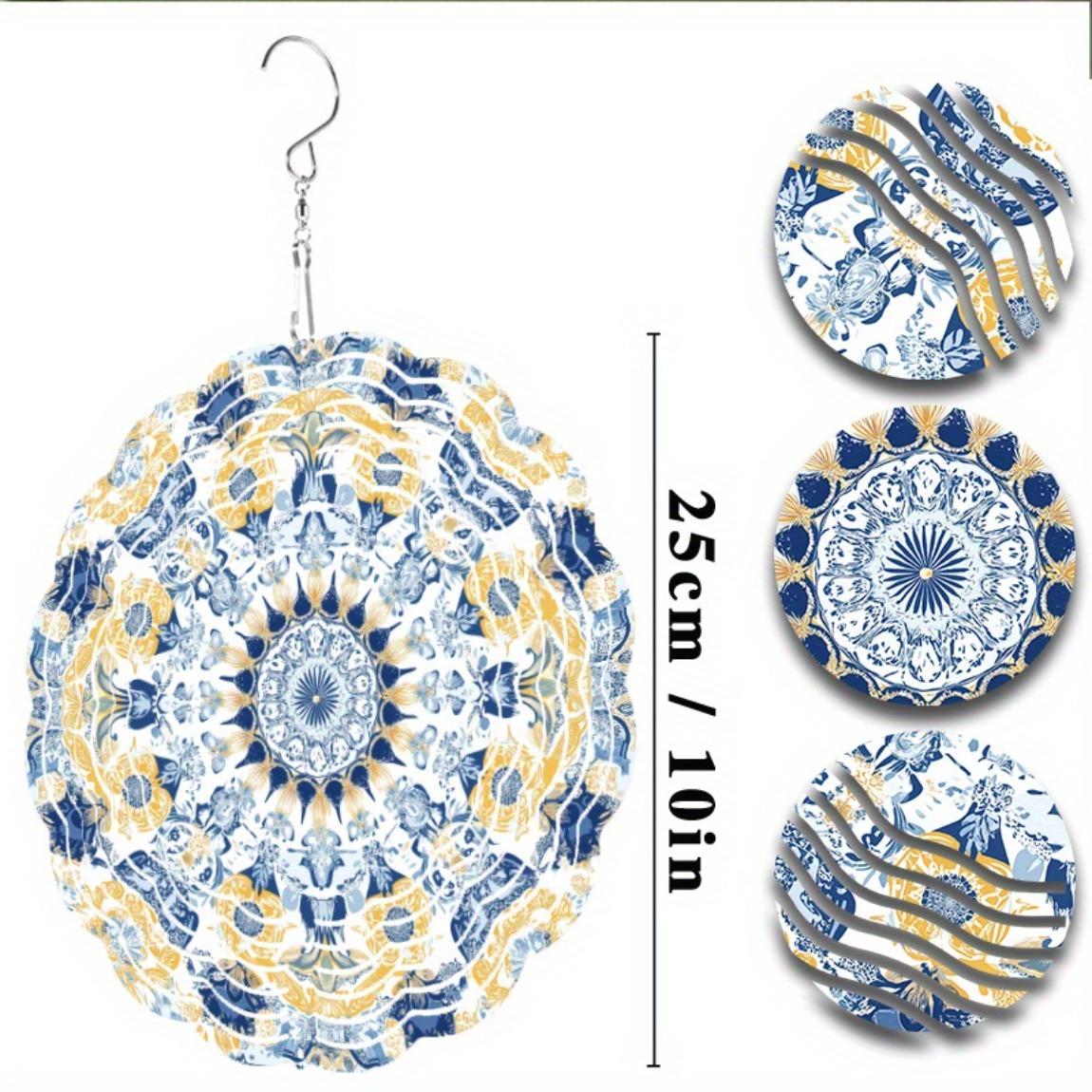 Синий и Золотой Мандала Металлический Колокольчик Ветра Ручной Работы Декор для Сада на Открытом Воздухе со Сложным Цветочным Дизайном Золотистые Акценты Прочные Колокольчики Ветра 01A