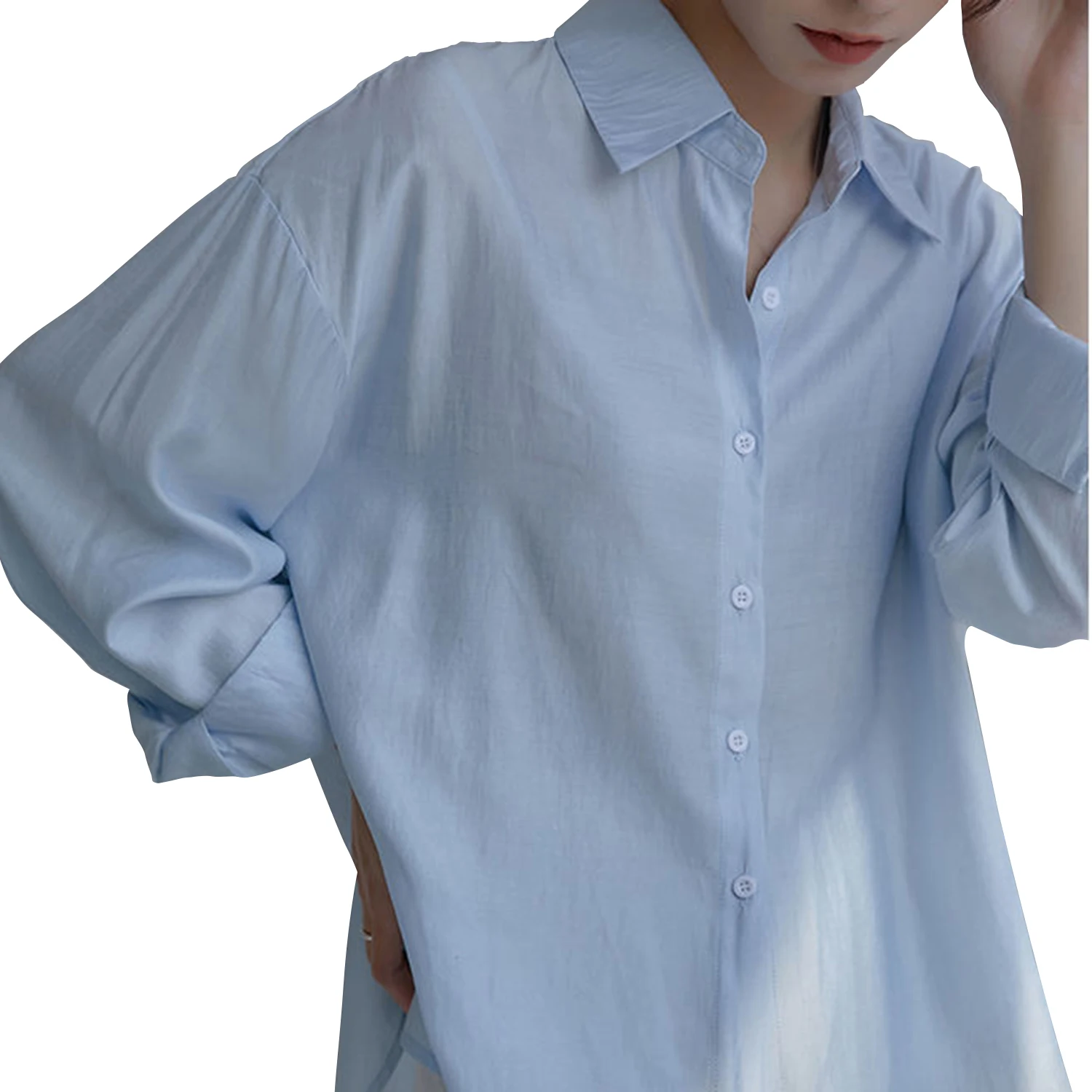 Синий белый женские топы и блузки офисные женские туфли хлопок размера плюс, топы с длинными рукавами, 2021 на весну в Корейском стиле; Модные ...