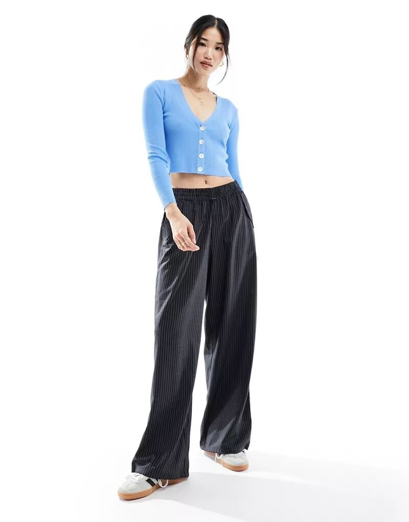 Синий кардиган с длинными рукавами и V-образным вырезом JDY