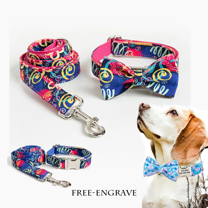Синий маг собак великолепные красочные Pet Воздухопроницаемая ткань тяговый трос-воротник для бантом Пользовательские Заготовка для подвески с гравировкой имени