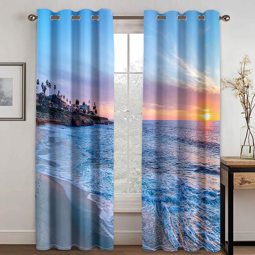 Синий океан Красивые шторы на небо Исцеляющие пейзаж освежающие Подходят для гостиной спальни кухни балкона 2 шт. 50W130H(CM)X2PCS&Hook