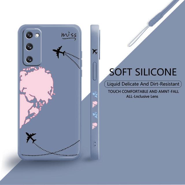 Синий, розовый, самолеты любви, карта мира, жидкий чехол для путешествий для Samsung Galaxy S22 S21 S20 Fe Ultra S10 S9 S8 Plus S10e Note 20 10 Lite Samsung Note 10 Plus