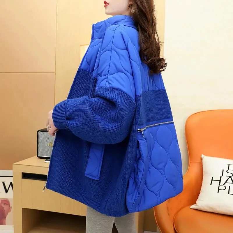 Синий свитер Klein, вязаные кардиганы, женская зимняя куртка, свободный пуховик, хлопковый свитер в стиле пэчворк, пальто, плотные теплые шикарные женские парки