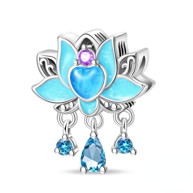 Синий эмалевый цветок лотоса, подвеска для браслета своими руками