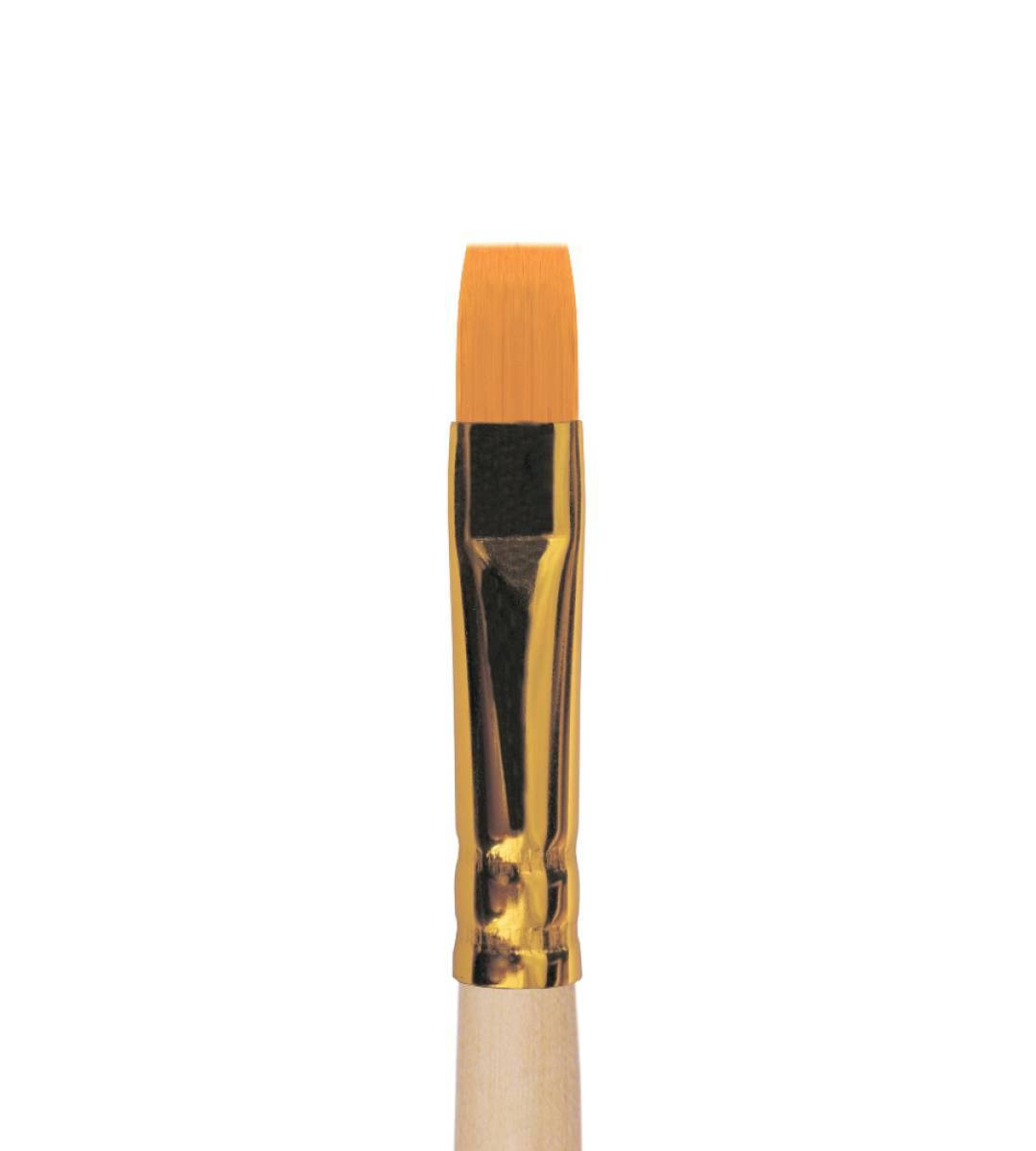 Плоска кисть з жорсткого синтетичного ворсу зручна у використанні за рахунок збалансованої довжини, що дозволяє працювати за мольбертом, утримуючи руку на відстані, і оцінювати композицію в загальному вигляді. Анодована алюмінієва обойма надійно захищає ворсинки вироби, а лакове покриття запобіжить від ковзання і продовжить життєздатність ручки. Прямокутна форма кисті дозволяє використовувати інструмент двома способами: можна працювати вершинкой для отримання контурів і коротких мазків, а також всією площиною пучка для заливки широкими смугами однорідного тону. Зручна при зображенні архітектурних споруд і транспортних засобів