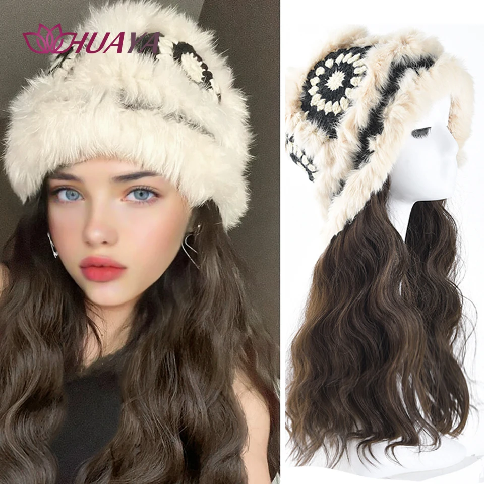Синтетическая шапка, парик, зимние шапочки, шапка с париками для женщин, длинные волнистые вьющиеся волосы, теплая мягкая Лыжная зимняя шапка с искусственными волосами