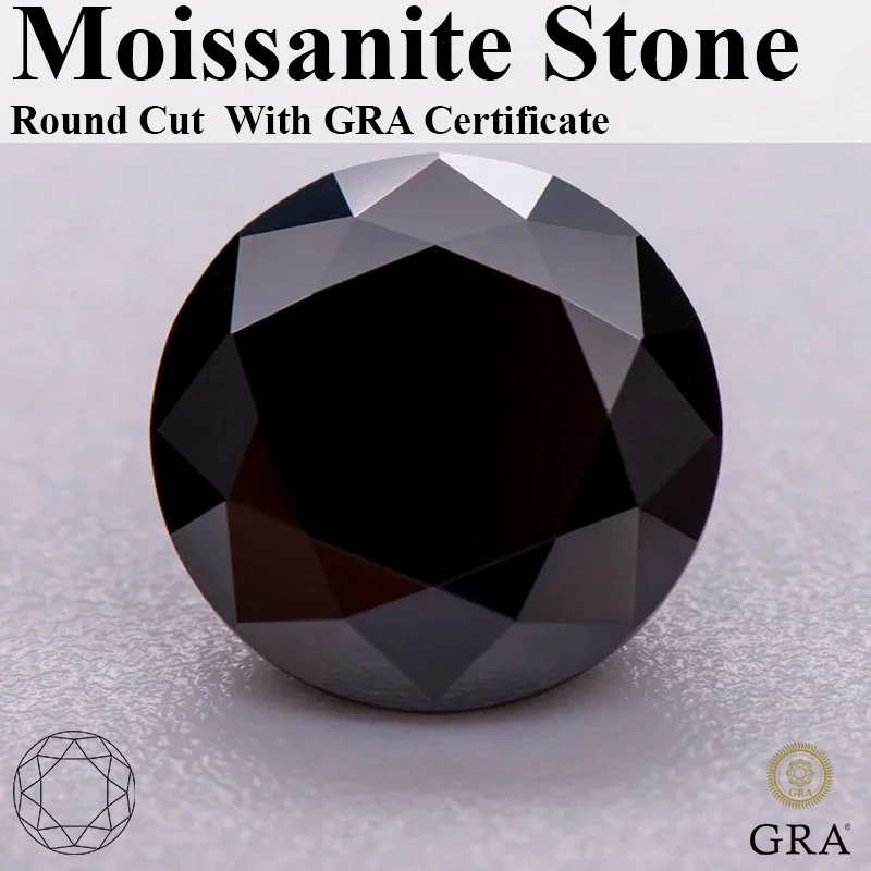 Муассанит, свободный камень, черный цвет, круглая огранка, 0,5-5,0 карата, драгоценный камень, созданная в лаборатории, ювелирные изделия из синтетических бриллиантов, поставляется с сертификатом GRA