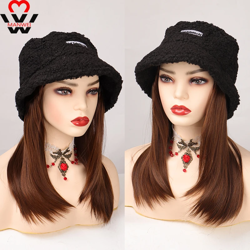 Синтетический парик MANWEI черного и коричневого цвета, длинные прямые волосы для наращивания, зимняя теплая шапка, модная Трендовая шапка, Па...