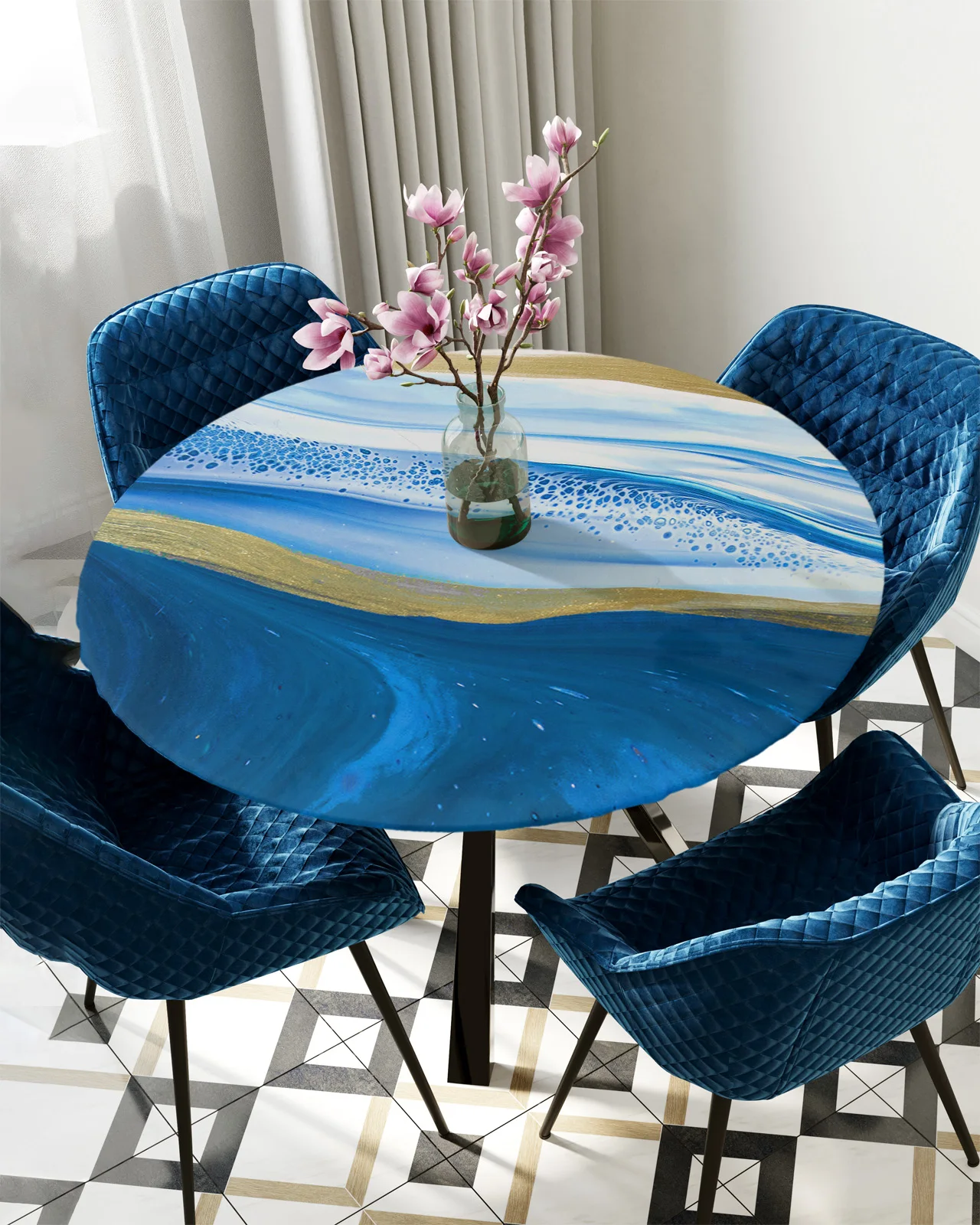 Синяя градиентная мраморная Акварельная круглая эластичная Обложка для стола Защитная ткань Водонепроницаемая прямоугольная облегающая скатерть