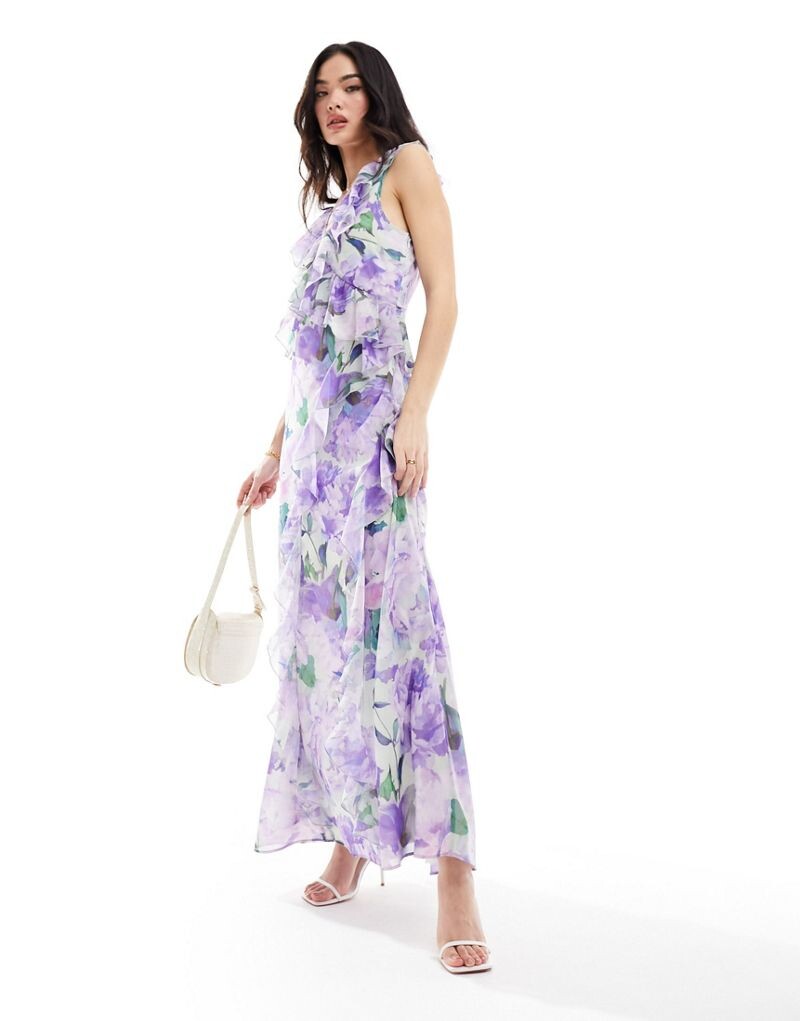 Сиреневое платье макси с оборками спереди Hope & Ivy