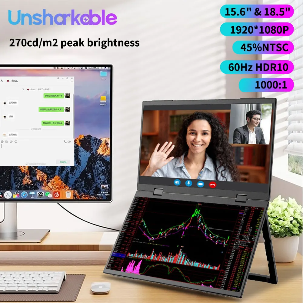 Неакуратный 15,6-дюймовый игровой монитор 1920*1080P с двумя экранами, портативный экран, USB Turn TypeC для переключателя, ноутбука, офиса H