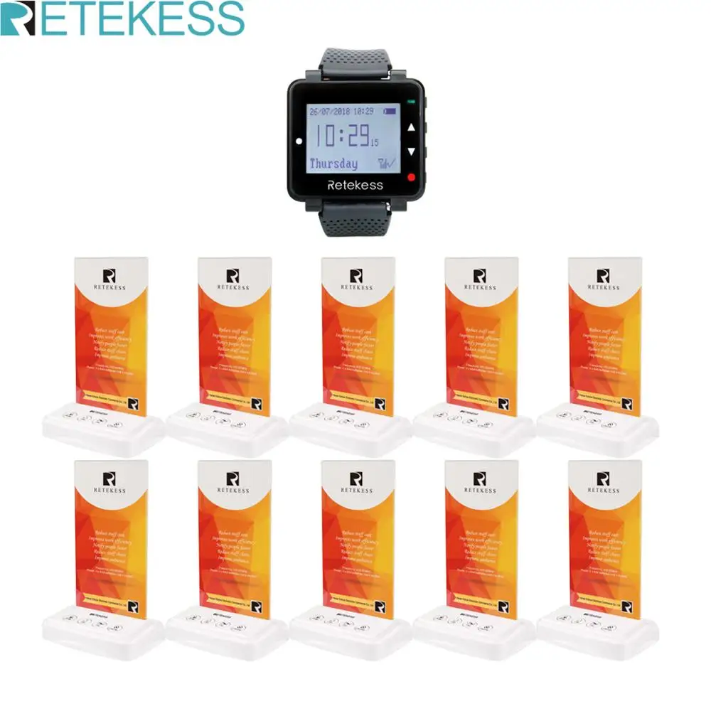 Система вызова официанта RETEKESS, беспроводная система вызова, часы-приемник, 10 кнопок передатчика
