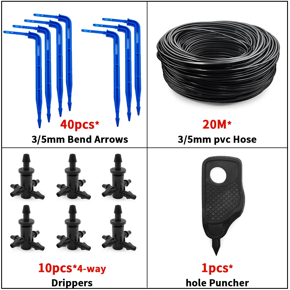 Система капельного орошения для теплицы, 4 канала, 3/5 мм, двухсторонний передатчик, для сада, газона, 10 комплектов/20 комплектов