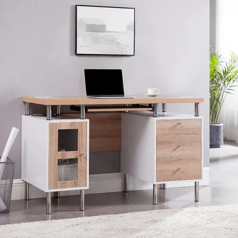 3-Drawer Contemporary Two-Tone Small Desk with Storage, Computer Table Desk with Drawers for Home, Office Desk with Drawers
