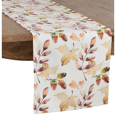 Fennco Styles Cottage Watercolor Acorn Leaves 16 x 90 Inch Table Runner – Multicolor Table Runner for Thanksgiving Dinner Family Gathering Special Event