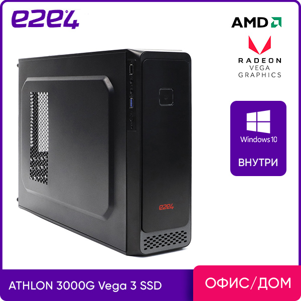 Системный блок e2e4 Office Compact, AMD Athlon 3000G 3.5GHz, 8Gb RAM, 240Gb SSD, AMD Radeon Vega 3, W10, черный (CPT-A3000-8-240-W), Compact