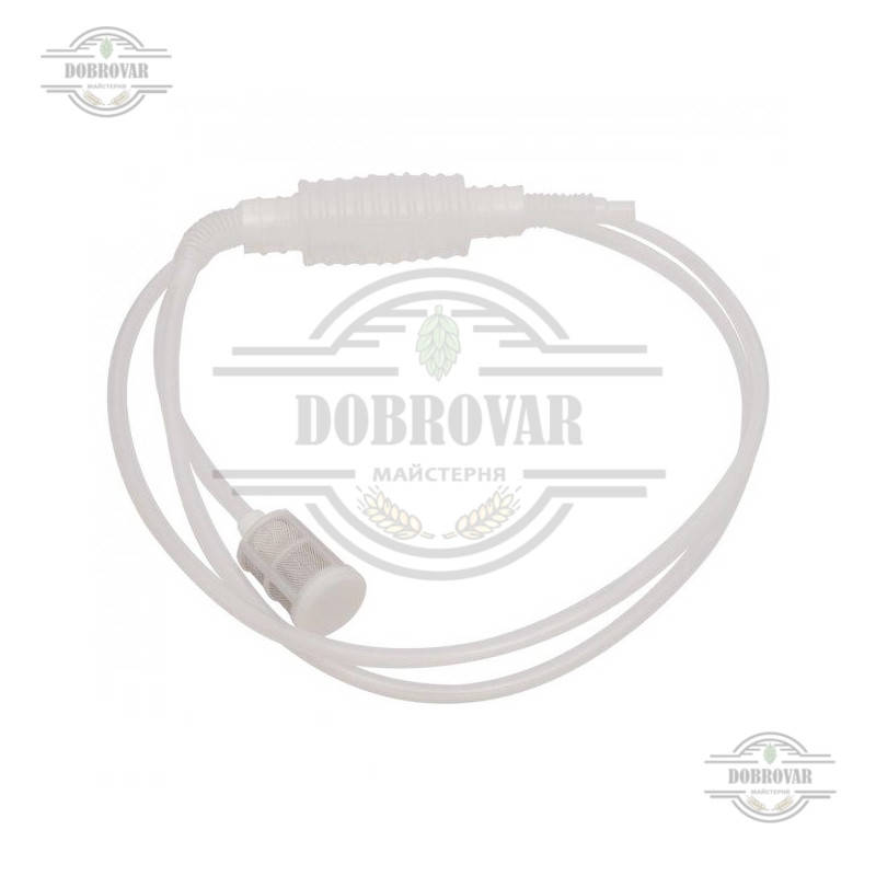 Сифон переливной с фильтром, который состоит из гнущегося трубчатого шланга, на конце которого есть фильтрующий клапан, имеющий небольшие сеточки для предотвращения попадания остатков продуктов брожения или других видов отходов. Используют для переливания пива, вина, браги.