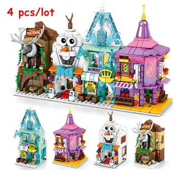 new 4 IN 1 Princess Frozeninglys Shop Store Street Building Blocks Kit Bricks Classic Movie Model Kids Friends Toys For Children