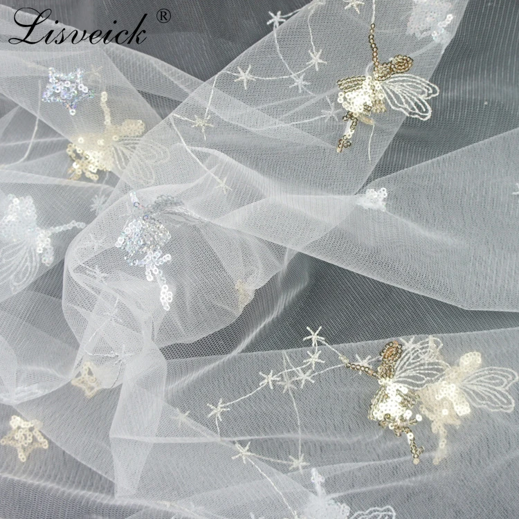 Сказочная кружевная ткань из усиленной сетчатой пряжи с блестками, для детского платья, юбки
