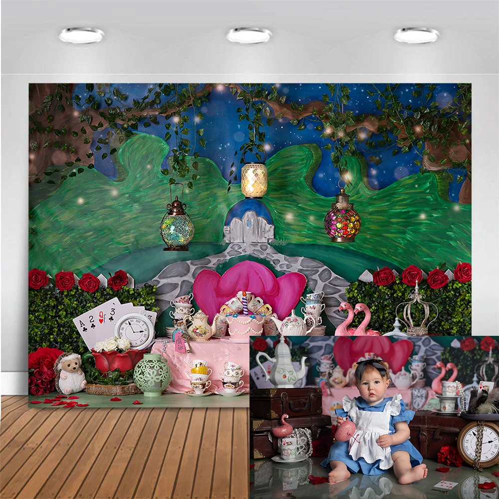 Сказочный фон для фотосъемки с изображением чая в стране чудес