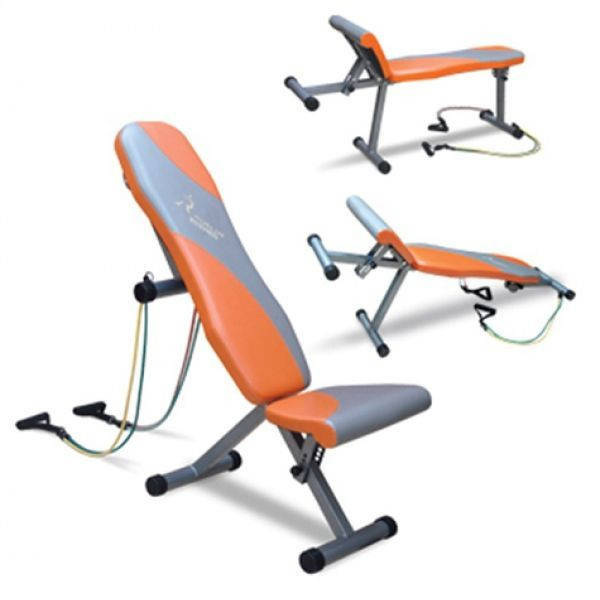 Материал: металл, PVC.Размер: 91*36*110 см.Два эспандера.Максимальный вес пользователя: 100 кг.Вес тренажера: 12 кг. Скамья универсальная предназначена для выполнения упражнения с гантелями, штангой, для тренировки мышц спины, груди, пресса, рук, ног и ягодиц. Также предназначена для выполнения упражнений с эспандерами (в комплекте 4 резиновых жгута различной жесткости и соответственно степени нагрузки). Конструкция 3 в 1: регулируемая скамья, скамья для пресса и римский стул, регулируемый наклон сидения и спинки, из-за чего очень удобно выполнять разные упражнения с гантелями и штангой. Упражнения можно выполнять как в положении лежа, так и в положении сидя.