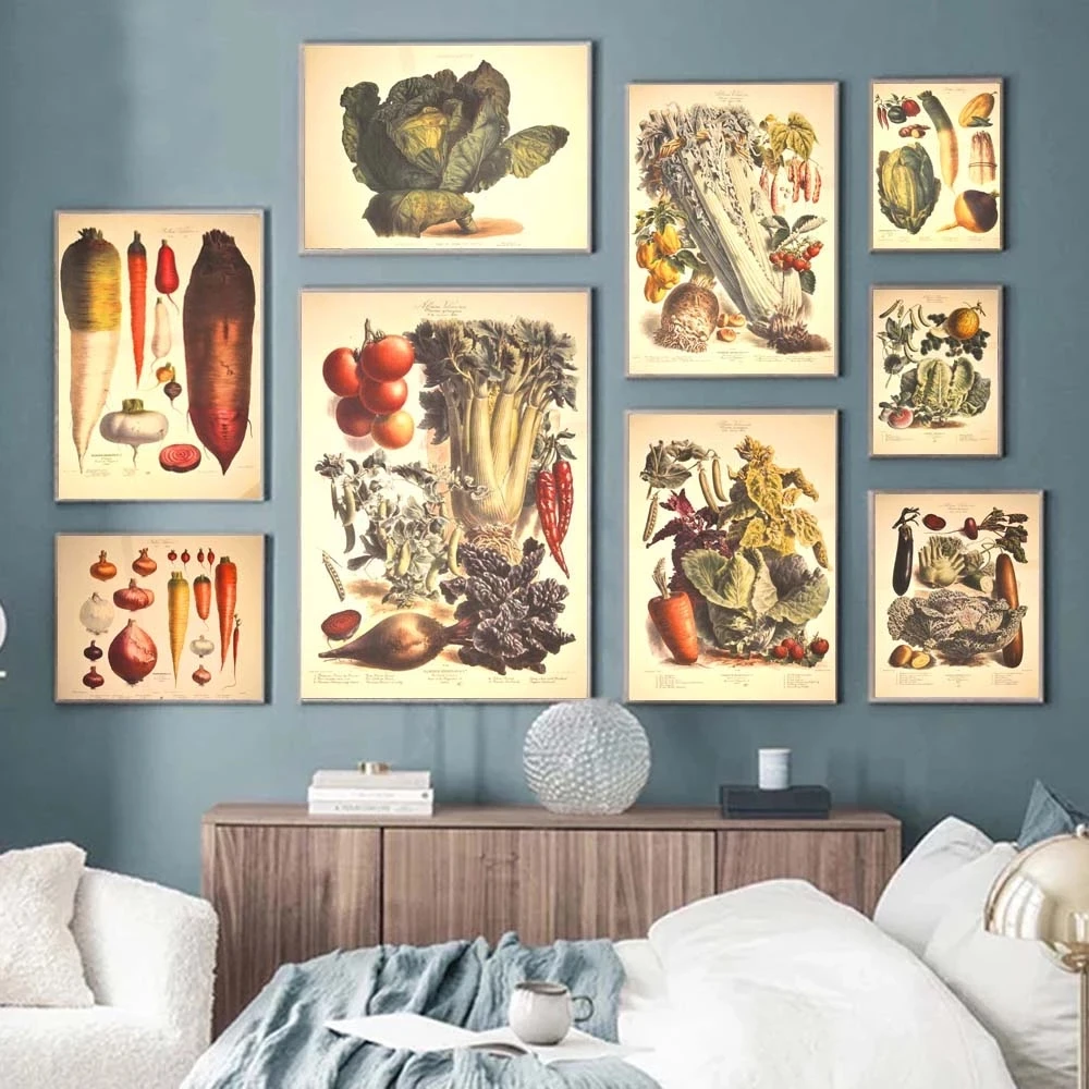 Скандинавская Ретро Картина на холсте с изображением растений, различные картины с изображением овощей, постеры для гостиной, кухни, коридо...