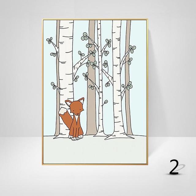 Скандинавская милая лиса, медведь, детская декоративная подвесная картина, мультяшное животное, панда, лиса, декор для детской комнаты, картина маслом 21*30cm