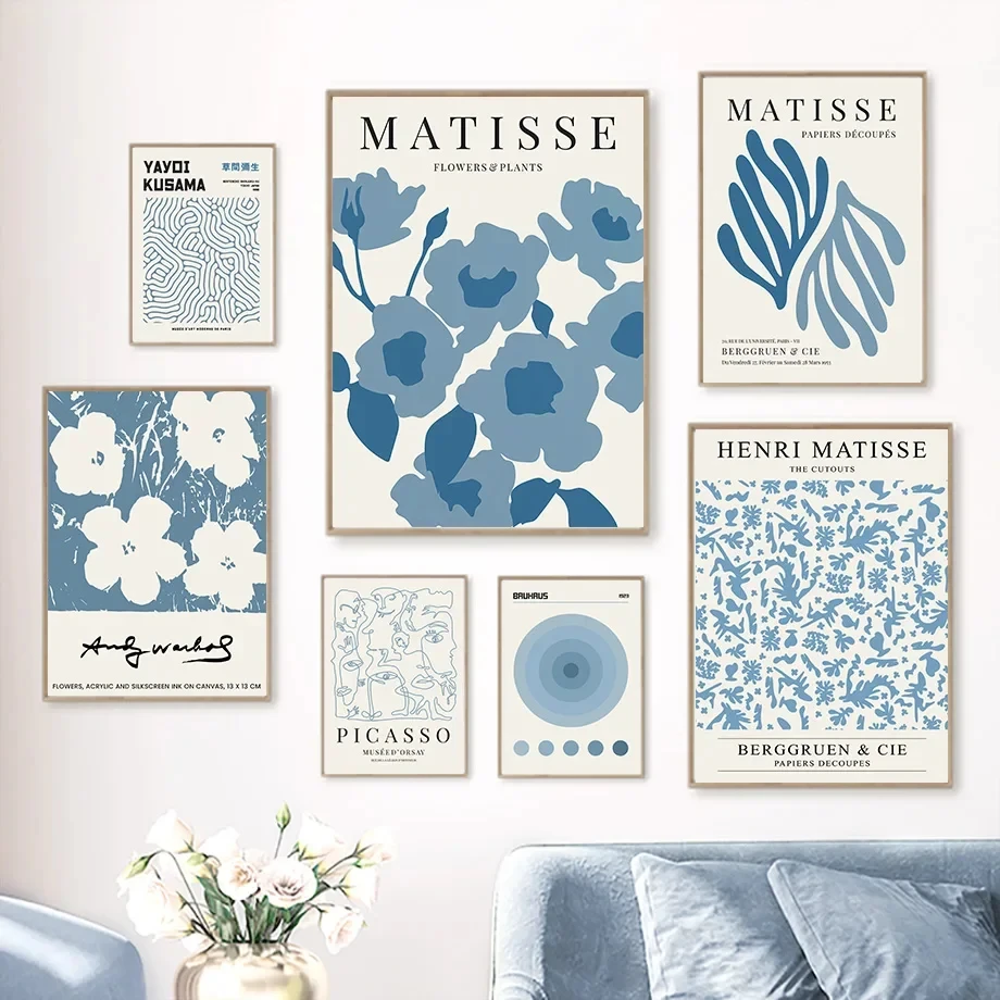 Скандинавский минималистичный эстетический настенный плакат синего цвета, Матисс, кузама, Яя, сумка, дом Пикассо, HD, масляный плакат на холсте, домашний декор, подарок