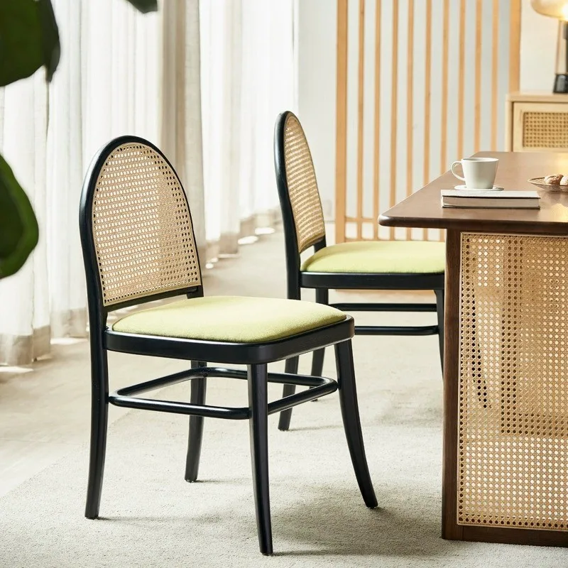 Скандинавский обеденный стул из цельной древесины из ротанга, мебель для гостиной в стиле Ins, стул для отдыха со спинкой, бытовое пространство 2023