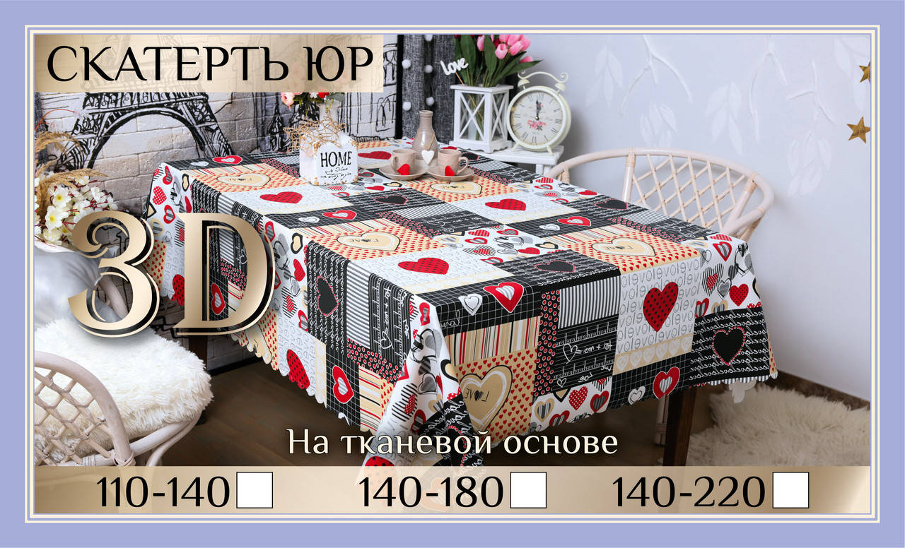 Скатерть клеенка 3D «Сердца» - это уют и практичность в вашем доме.Она оформлена в любовной тематике с множеством различных сердец и другими любовными украшениями.