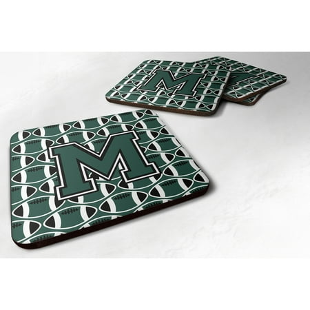 Carolines Treasures CJ1071-MFC Letter M Football Green and White Foam Coaster Set of 4 3 1/2 x 3 1/2 multicolor