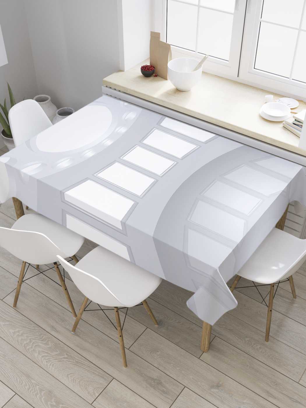 Скатерть прямоугольная JoyArty "Круглая веранда" из оксфорда, 120x145 см, Серый, Круглая веранда